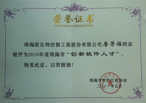 欧比特公司董事长、总经理颜军荣获“情系珠海”荣誉奖